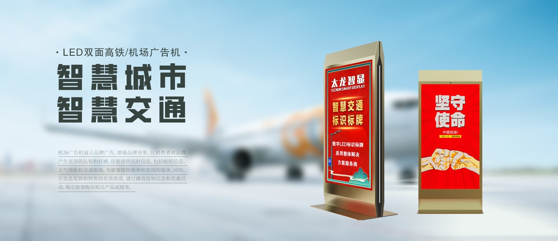 太龍智顯科技(深圳)有限公司(簡稱太龍智顯),位于深圳石巖湖濕地公園,是上市公司太龍照明(股票代碼:300650)的控股子公司,同時也是一家高新技術企業(yè)。太龍智顯基于大數(shù)據(jù)時代下的智慧城市、平安城市、數(shù)字城市融通需求及5G基站建設需要,以LED燈桿屏、智慧燈桿屏、戶外LED廣告機、數(shù)字標牌為突破口,專業(yè)提供工業(yè)級新型智慧城市終端解決方案,積極參與5G基站配套建設,推進智慧中國、平安中國、數(shù)字中國的建設。